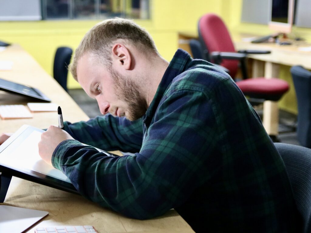 This course introduces students to the tools and techniques of digital drawing and design using professional software. Students will learn how to create digital illustrations, develop layouts, and combine text and image for creative projects. This class practices with drawing tablets while utilizing digital brushes, layering, and color management. Students will also explore various approaches to composition and visual storytelling. Each week builds technical skills while encouraging individual style and experimentation. Students will work on a series of digital works suitable for print or web and gain a strong foundation for personal or professional creative practice.